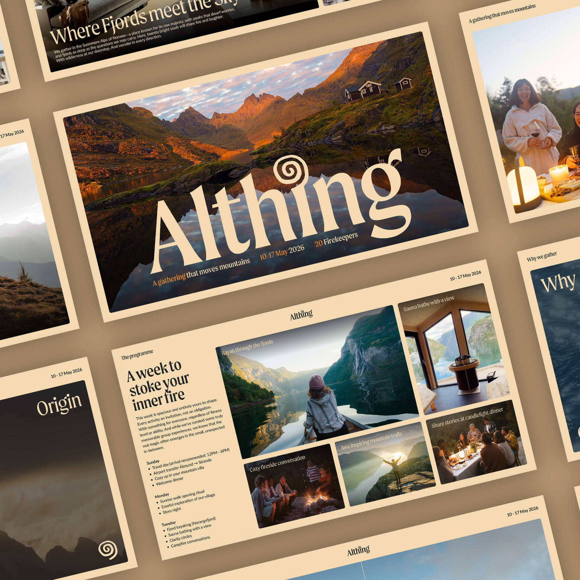 We gather in the Sunnmøre alps of Norway—a place known for its raw majesty, with peaks that dwarf worries, and fjords as deep as the questions we may carry. Here, twenty bright souls will share fire and laughter. With wilderness at our doorstep. And wonder in every direction.